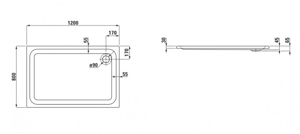 Душовий піддон Laufen Solutions 80х120 см акрил білий H2125020000001