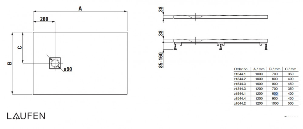 Душевий піддон Laufen Solutions 80х120 см композитний матеріал Marbond білий