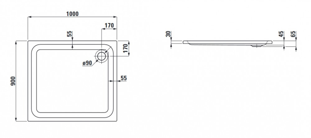 Душовий піддон Laufen Solutions 90х100 см акрил білий H2115090000001