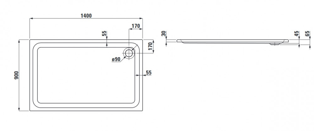 Душовий піддон Laufen Solutions 90х140 см акрил білий H2125080000001
