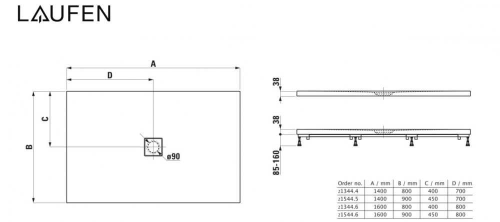 Душевий піддон Laufen Solutions 90х160 см композитний матеріал Marbond пісочний