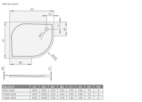 Душевий піддон Radaway Delos E 100x90 см лівосторонній акрил білий