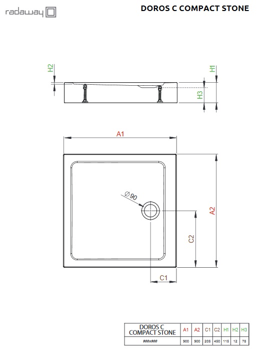 1) Душовий піддон Radaway Doros C Compact Stone Anthracite 90х90 під камінь акрил антрацит
