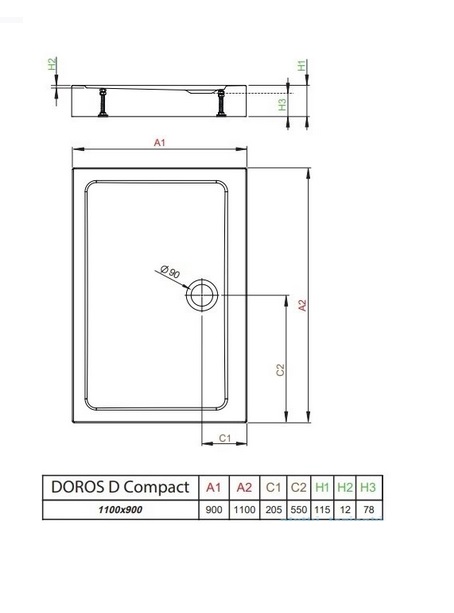 1) Душовий піддон Radaway Doros D Compact Stone White 110х90 під камінь акрил білий