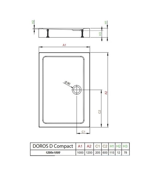 1) Душовий піддон Radaway Doros D Compact Stone White 120х100 під камінь акрил білий