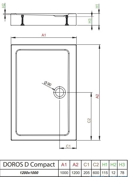 1) Душовий піддон Radaway Doros D Compact Stone Anthracite 120х100 під камінь акрил антрацит