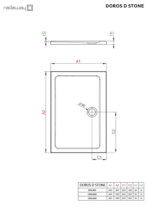 1) Душовий піддон Radaway Doros D Stone Anthracite 90х80 під камінь акрил антрацит