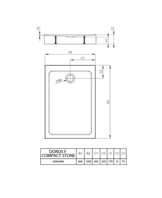 1) Душовий піддон Radaway Doros F Compact Stone White 120х90 під камінь акрил білий