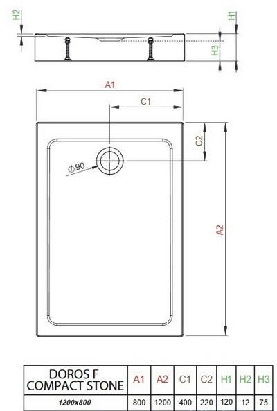 1) Душовий піддон Radaway Doros F Compact Stone Anthracite 120х80 під камінь акрил антрацит