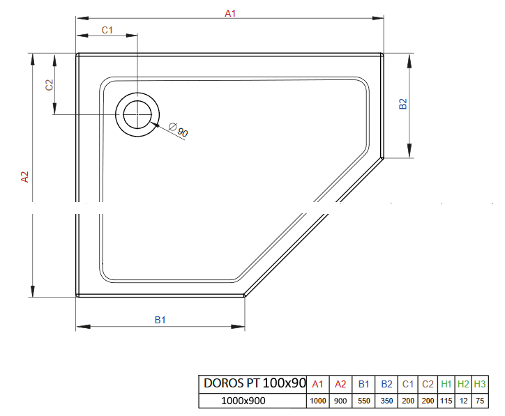 1) Душовий піддон Radaway Doros PT E Compact 100х90 лівобічний акрил білий