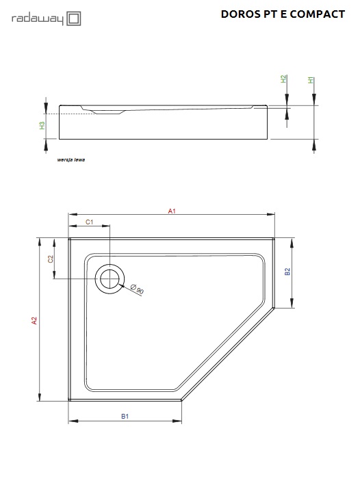 1) Душовий піддон Radaway Doros PT E Compact 100х90 правобічний акрил білий
