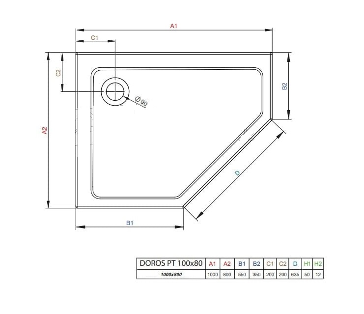 1) Душовий піддон Radaway Doros PT E Stone White 100х80 правобічний під камінь акрил білий