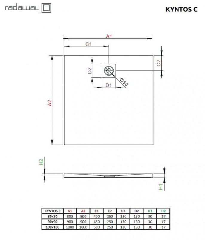 1) Душовий піддон Radaway Kyntos C 100х100 литтєвий мармур чорний