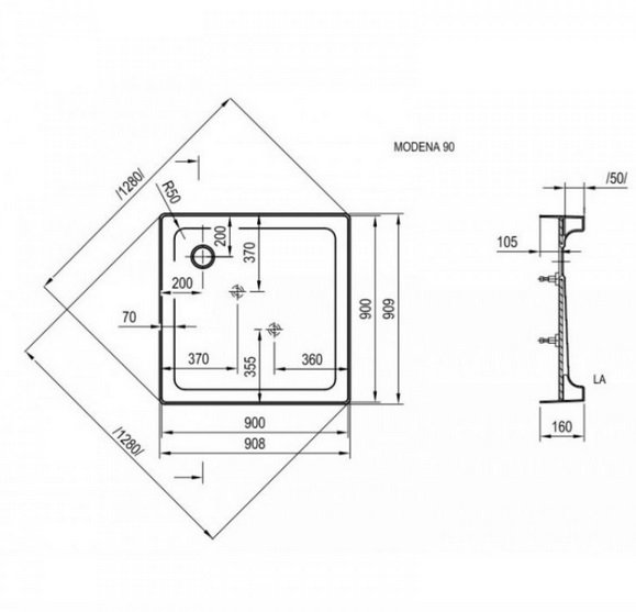 - піддон підходить для будь -якого квадратного душу 900 мм 4