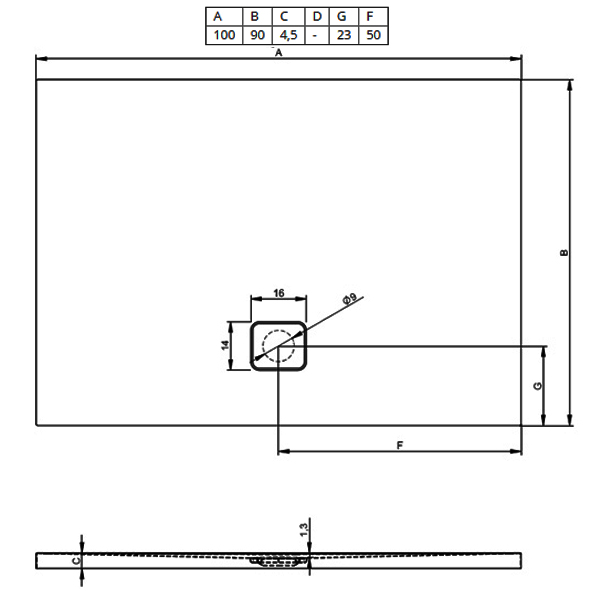 1) Душовий піддон Riho Basel 414 100x90 см акрил чорний глянсовий / хром