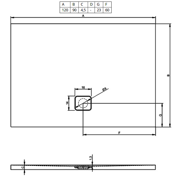 1) Душовий піддон Riho Basel 416 120x90 см акрил білий
