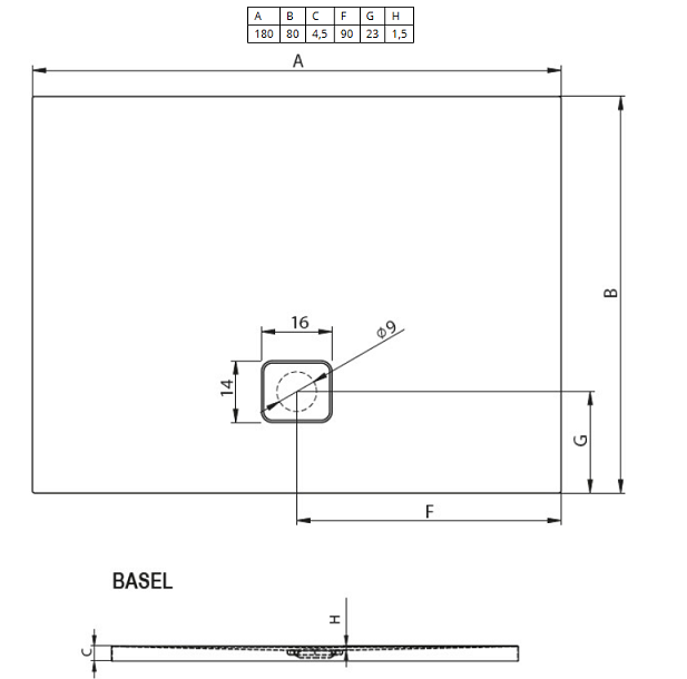 1) Душовий піддон Riho Basel 424 180x80 см акрил білий