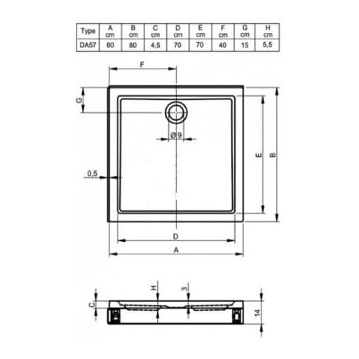 1) Душовий піддон Riho Davos 249 80х80 см акрил білий