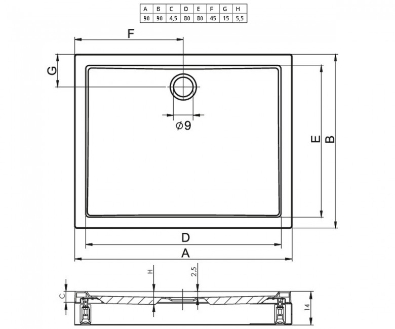 1) Душовий піддон Riho Davos 251 90х90 см акрил білий
