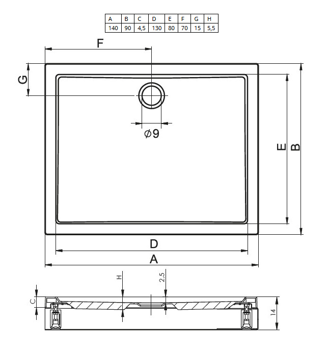 1) Душовий піддон Riho Davos 257 140x90 см акрил білий