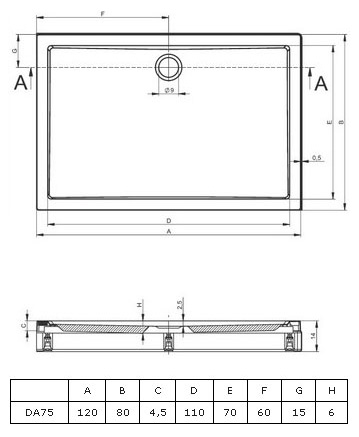 1) Душовий піддон Riho Davos 275 80x120 см акрил білий