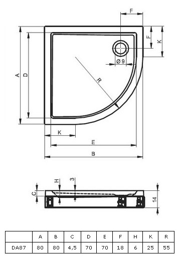1) Душовий піддон Riho Davos 279 80x80 см акрил білий