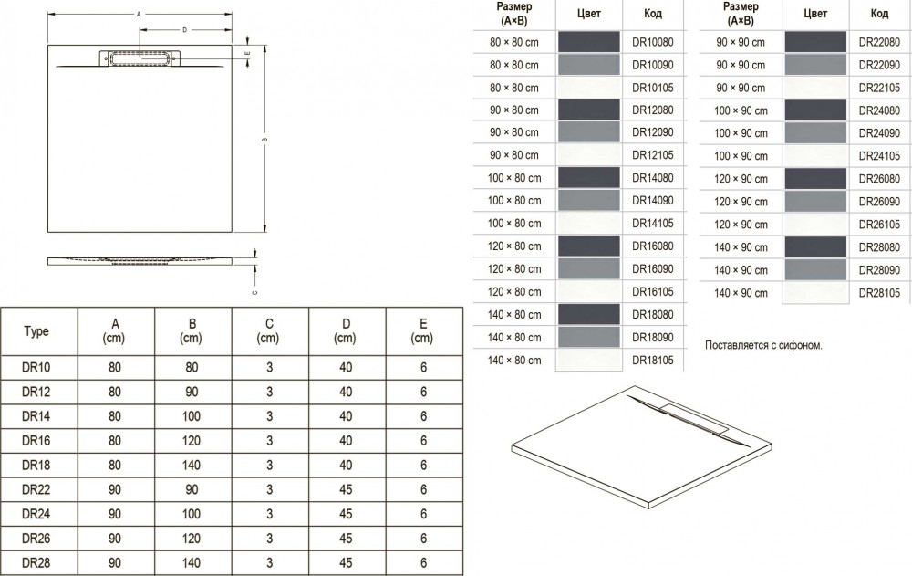 1) Душовий піддон Riho Isola 140х90 см литий мармур світло-сірий