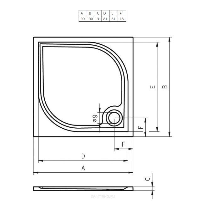 1) Душовий піддон Riho Kolping DB21 90х90 см акрил білий