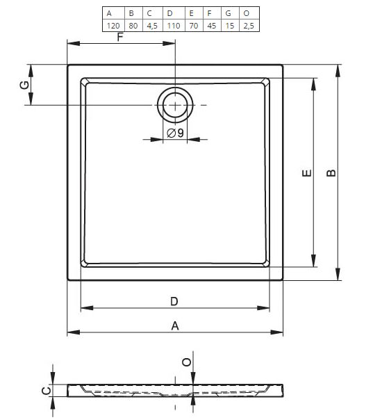 1) Душовий піддон Riho Zurich 272 80х120 см акрил білий