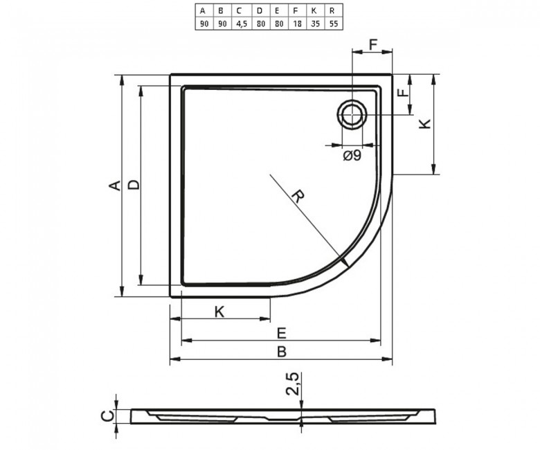 1) Душовий піддон Riho Zurich 280 90х90 см акрил білий