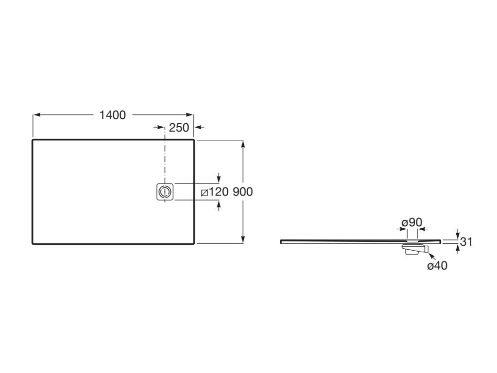 Душевий піддон Roca Magma 140х90 см штучний перлинний камінь