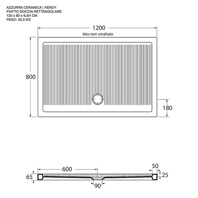 1) Душовий піддон Simas 120х80 см кераміка білий