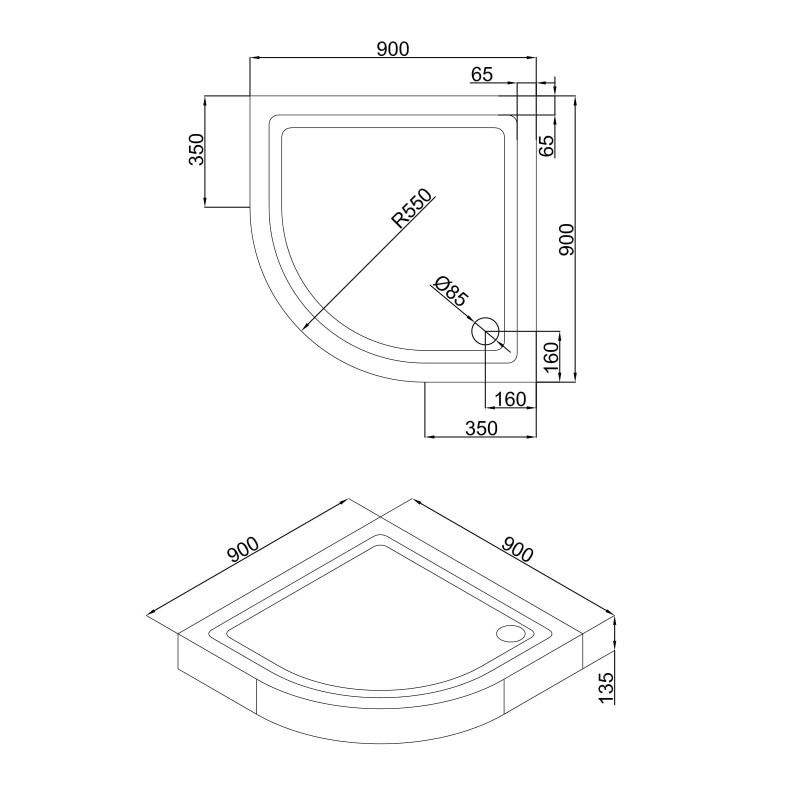 Душовий піддон Volle 90х90 см акрил білий 10-22-202