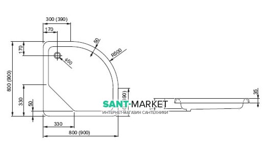 Душовий піддон акриловий чверть кола Aqaform Standard 90х90х13 білий 35024