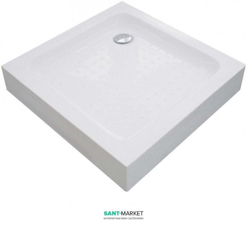 Квадратний акриловий піддон із формованою панеллю 80*80*15 см, сифон у комплекті. Діаметр зливного отвору 60мм, сифон 90мм.