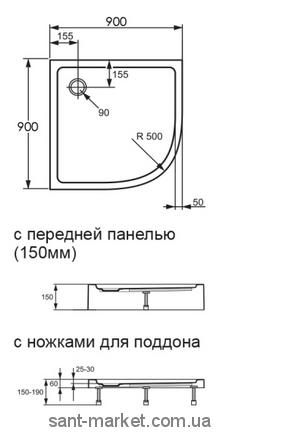 Душовий піддон акриловий чверть кола Huppe Xerano 90х90х15 білий 840201.055