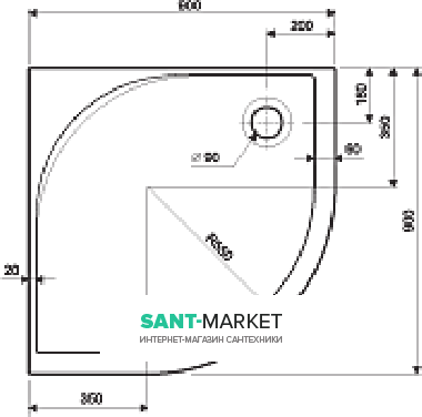 Душовий піддон акриловий чверть кола Kolo AKCENT 90х90х5 білий XBN0490000
