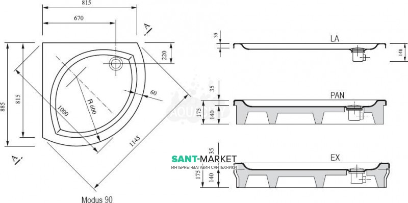 Самонесучий піддон під облицювання кахлем. Піддони типу EX складаються з поліуретанового носія та акрилової форми. Від піддонів типу PU відрізняються тим, що піддон типу EX обрізаний так, щоб можна було облицьувати його кахлем. У такому випадку облицювання клеїться безпосередньо до піддону. Не кожен професіонал може безпомилково зробити каркас і після цього облицювання круглої форми. Але навіть новачок зможе облицювати поліуретановий носій керамічною плиткою.
