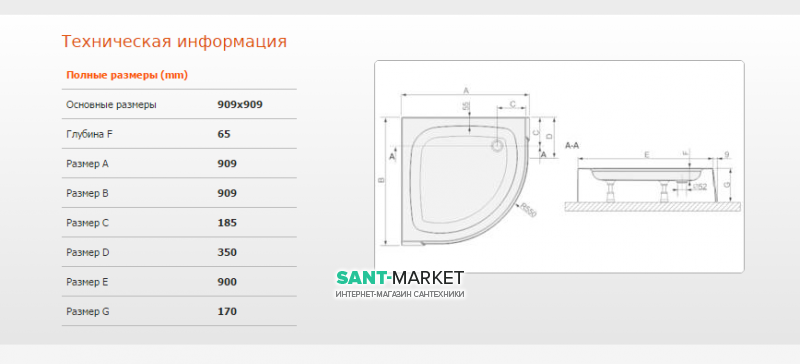 Душовий піддон акриловий чверть кола SANPLAST BPza-b / EKOPLUS 91x91x6.5 білий bi