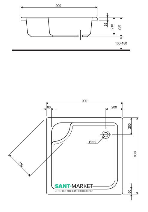 Душовий піддон акриловий квадратний Kolo DEEP 90х90х23 білий XBK0390000