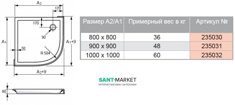 Душовий піддон чверть кола Huppe Verano 100х100х8 з формування панеллю білий 235032.055