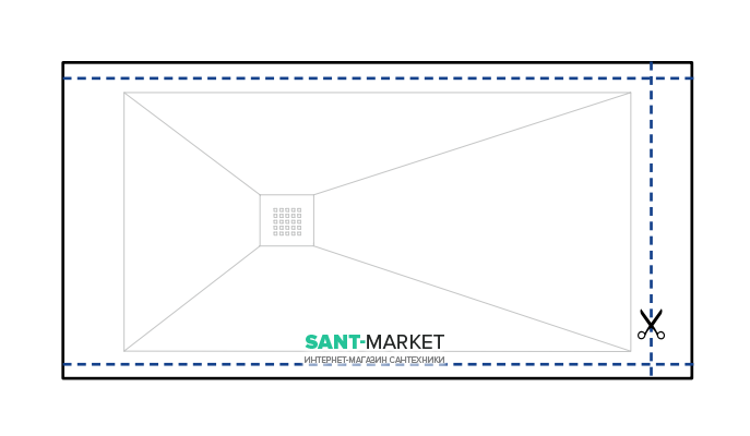 Душовий піддон Hatria Dedicato 1801-1899x900 мм універсальної установки, легко обрізається під ваш розмір по довжині, відстань від краю до зливного отвору 650 мм. Тільки 3 см у висоту, легко ріжеться, 6 різних кольорів (фото).