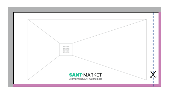 - Завдяки легкості обрізки піддон може бути адаптований до особливих розмірами, що дозволяє зберігати цілими колони, низькі стіни або кути, існуючі в приміщенні.