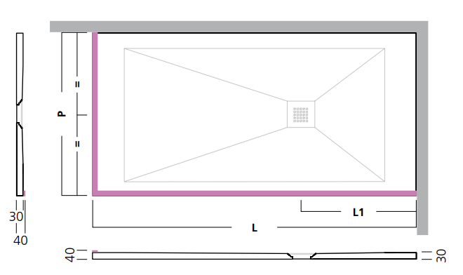 - Завдяки легкості обрізки піддон може бути адаптований до особливих розмірами, що дозволяє зберігати цілими колони, низькі стіни або кути, існуючі в приміщенні.