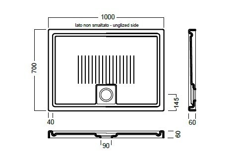 Піддон душової HATRIA LEAF YXMJ01 з кераміки зі знімним легкоочіщающейся зливом 90 мм, розмір 100х70х6 см, колір антрацит. Вбудована установка або з опорою на підлогу. Монтаж зі зливомдалі від стіни, неемальована сторона повинна бути протилежна зливного отвору. Сифон купується окремо.
