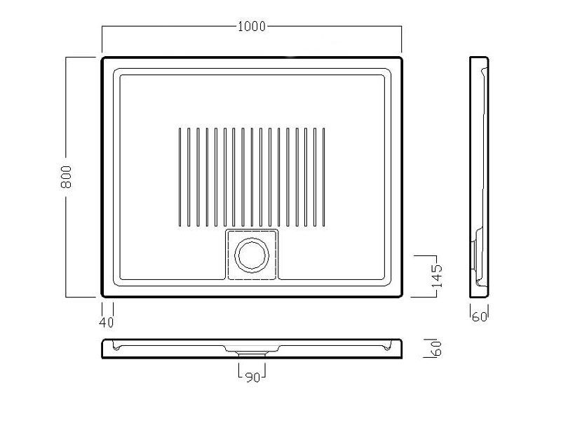 1) Душовий піддон Hatria LIF.ST 100х80 см антрацит