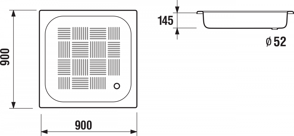 1) Душовий піддон Jika Sofia Antislip квадратний 90x90 см сталь білий