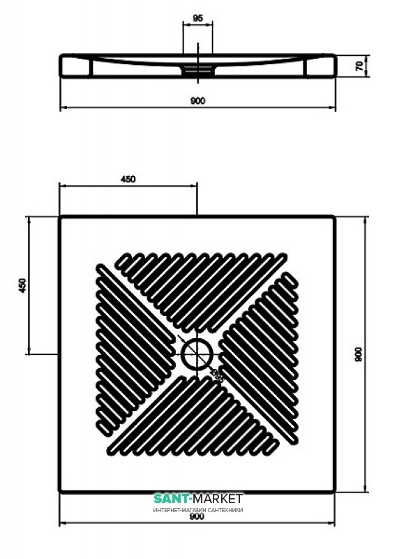 Душовий піддон керамічний квадратний Kolo ABELE 90х90х7 білий XBK1290000