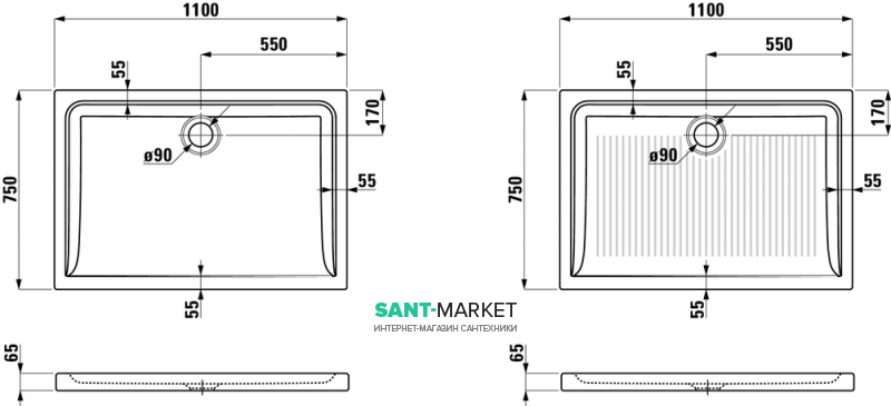 Душовий піддон керамічний прямоугльний Laufen Merano 110x75х6.5 білий H8549520000003