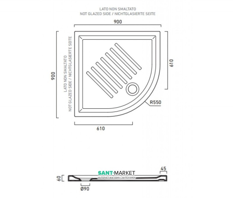 Душовий піддон кераміка Catalano Verso 90х90х6 білий 19090AH600